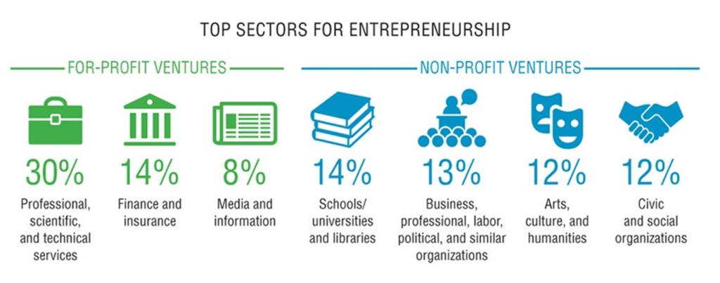 Figure 1d: Top Sectors for Entrepreneurship featuring Harvard Alumni